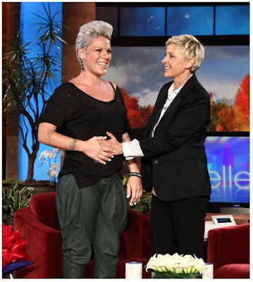 Pink está grávida, ela anunciou no programa da Ellen DeGeneres. Depois de Mariah Carey, que anunciou esperar seu primeiro filho no começo do mês, a cantora de "So What" também anunciou sua gestação. Acreditem, a fórmula foi a mesma: Pink anunciou a novidade num talkshow da TV norte-americana, Mariah também; Pink disse que não tinha contado antes porque anteriormente sofreu um aborto espontâneo, Mariah também; Pink anunciou a gravidez na semana que seu novo álbum chega às lojas; Mariah também!